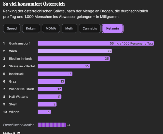 Strass im Zillertal hat keine 1000 EW, aber scheinbar fleißige Ketaminkonsumenten.