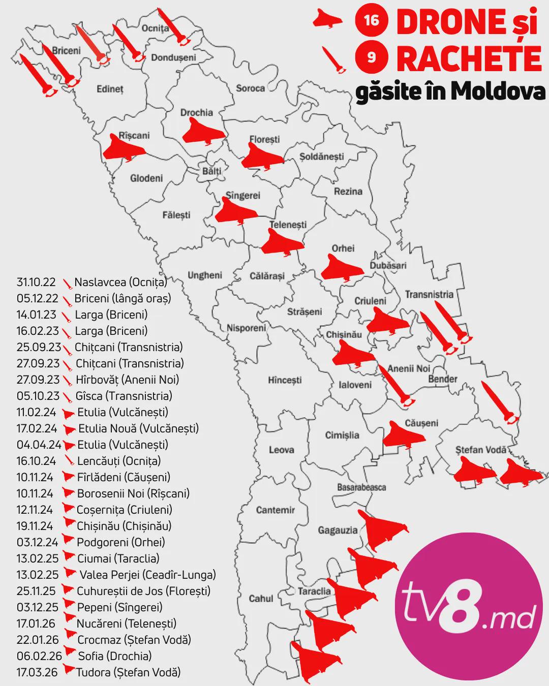 >sursa https://tv8.md/2026/03/18/infografic-harta-tuturor-dronelor-si-rachetelor-gasite-in-moldova-dupa-atacurile-rusiei-in-ucraina/299258