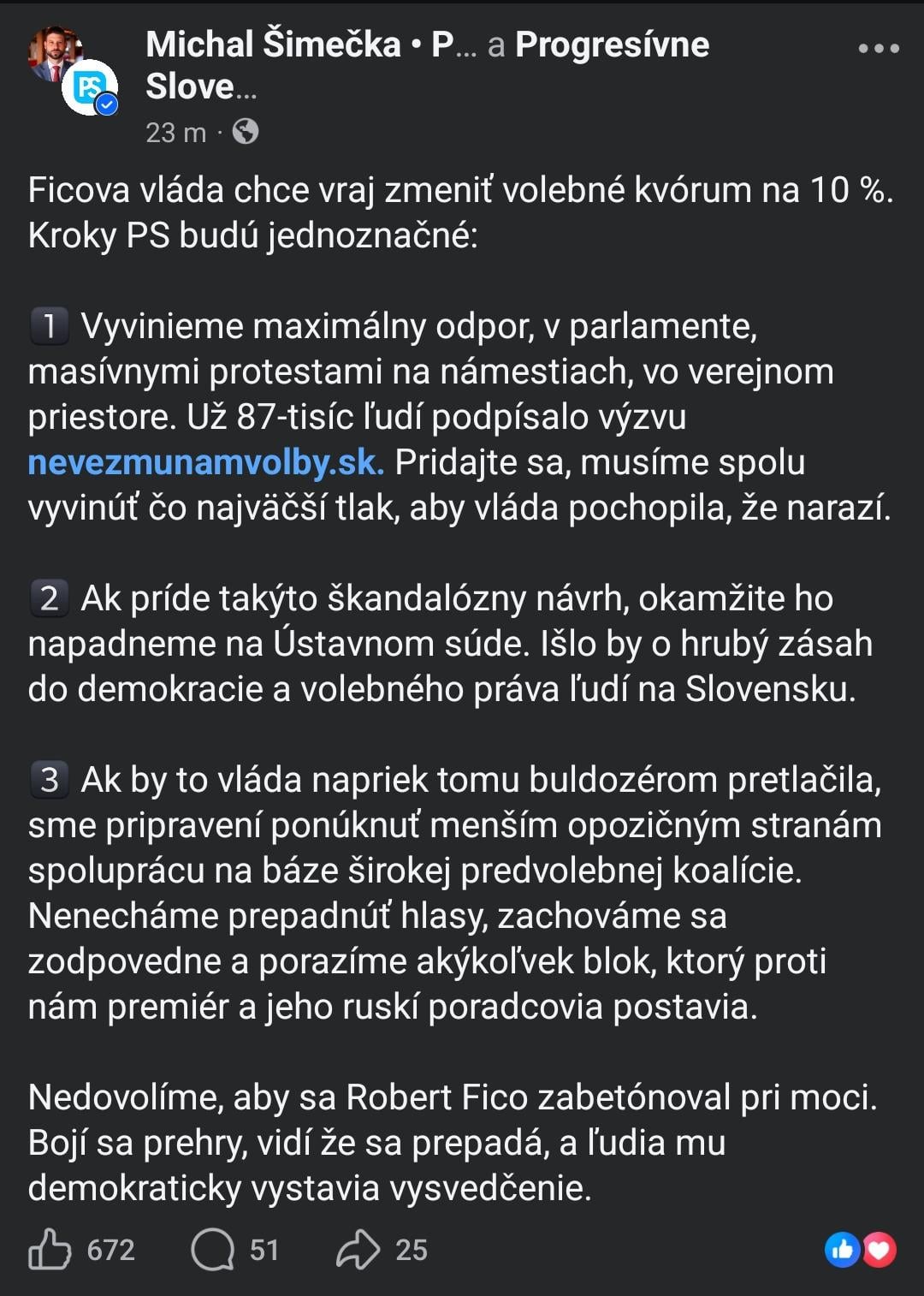 Každopádne ak by to prešlo, bolo by to zaujímavé z toho, že by sa nám tu asi vytvorili 2 bloky (za predpokladu, že si SaS, KDH, Dem. netrúfnu na 10% sami, a sa tiež spoja.) Nazvime to demokratický a antidemokratický.