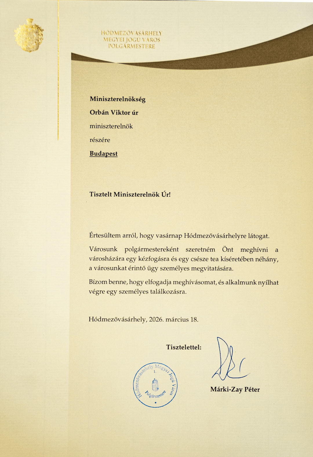 Nel primo pomeriggio ho inviato una lettera a Viktor Orbán, che ho invitato in municipio se fosse comunque in visita a Hódmezővásárhely.