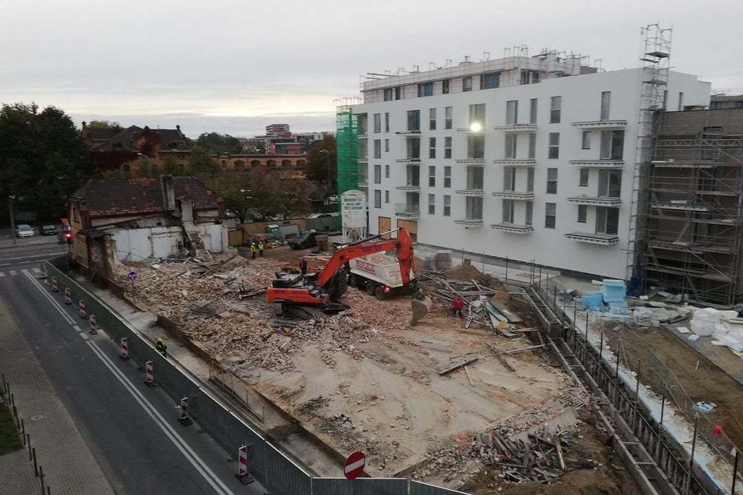 Il promotore ha creato un simile abominio a Poznań e l’impresa edile si vanta ancora della sua partecipazione al progetto su Linkedin. Per costruirlo, il costruttore ha demolito illegalmente parte dello storico edificio dell’Ufficio del Capitano