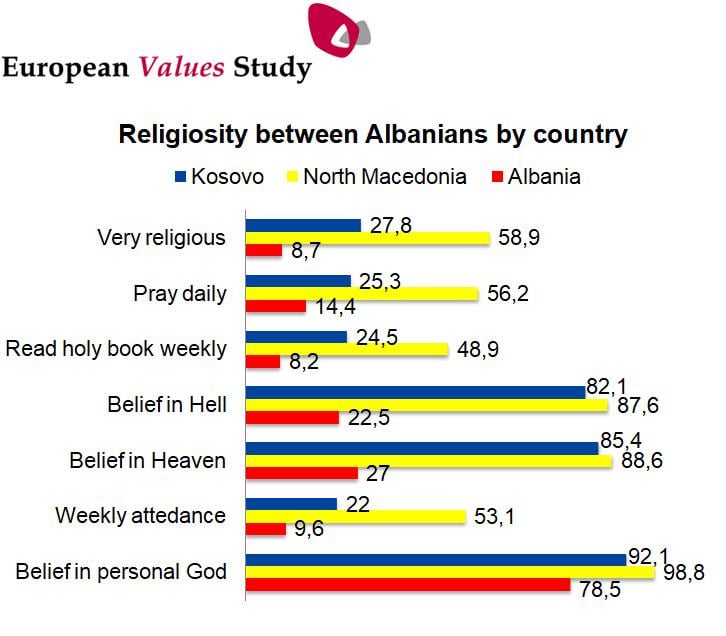 Shanca s’ka 50% e respodentve në Maqedoni e mbi 20% në Kosovë me lexu Kuranin ni herë në javë… Dmth krejt pasunine që e kom(1 biznes, Crypto, banesën, shpinë) e fus n’bast që shanca nuk ka. Veç i kanë dhanë përgjigjjet “që duhet” me i dhënë, e jo të vërtetën.