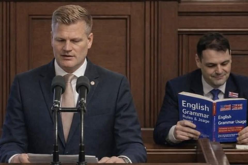 Jasnej fake. Macinka zásadně čte Rudé právo.