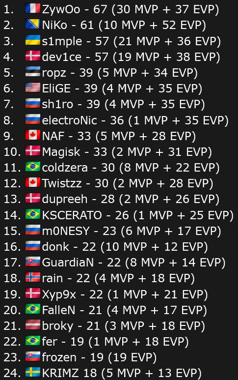 Giocatori CS con il maggior numero di MVP ed EVP https://i.redd.it/xda2msd8evpg1.png di jimbleskuul06