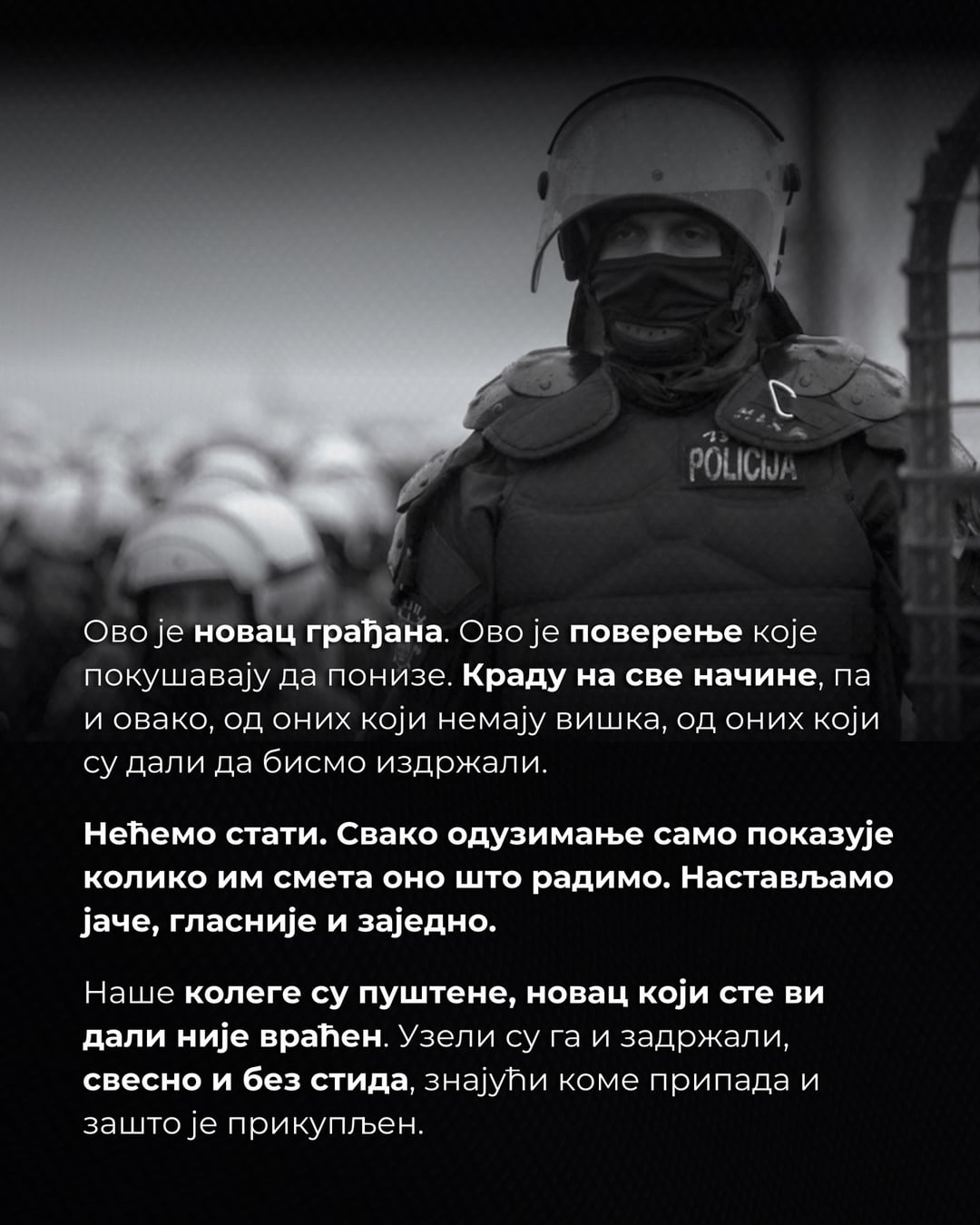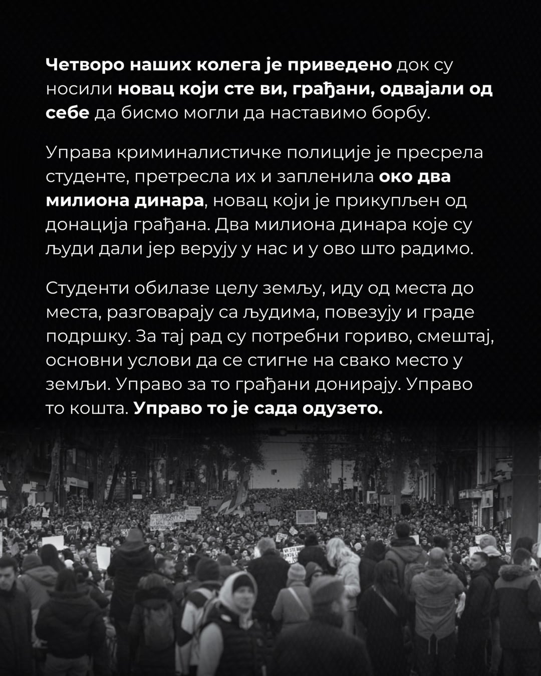 Nemamo kontekst ali kako su ih presleli? Kako su znali tačno gde su pare? Opet ponavljam, ili imaju svog čoveka u studentskim redovima ili imaju softver u njihovim telefonima i prate njihovu lokaciju.