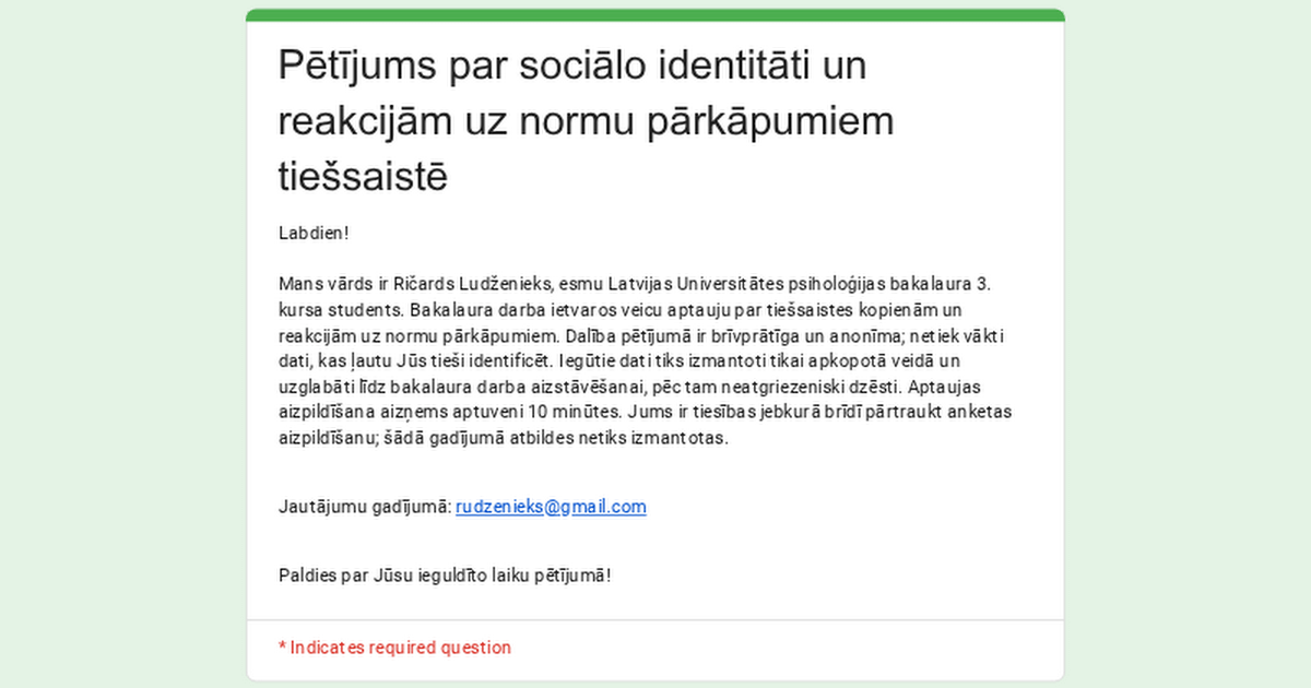 Sono uno studente di psicologia presso l’Università della Lettonia e ho condotto un sondaggio anonimo sulle comunità online e sulle reazioni alle violazioni delle norme in Lettonia.