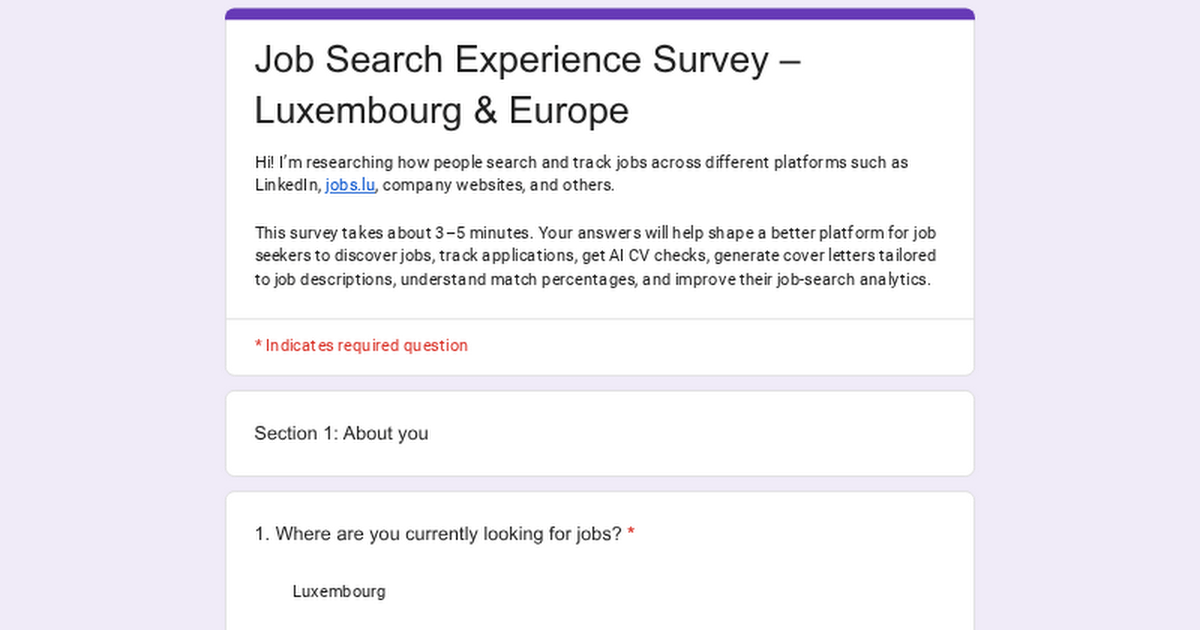 Se sei attualmente alla ricerca di lavoro o hai cercato lavoro di recente, mi farebbe davvero piacere se potessi compilare questo breve sondaggio:
