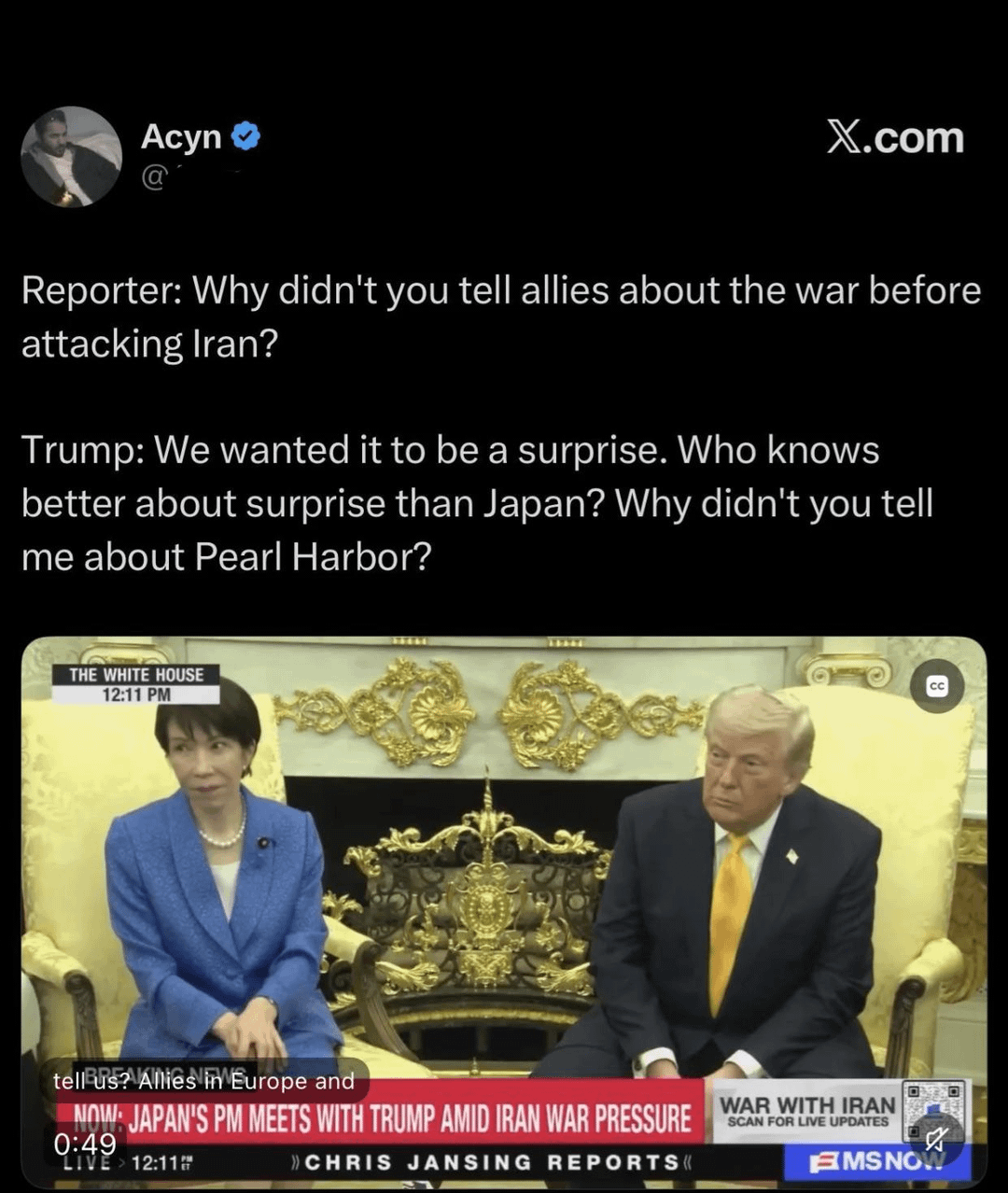 Dur_Gwana on 20/03/2026 18:27 How was the Pearl Harbor remark insulting? Edit: care to explain? Or downvoting is the extent of your ability?