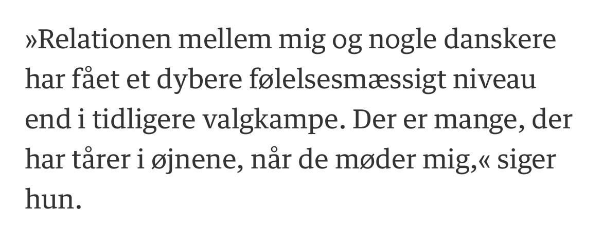 Det kunne godt være, at Mette skulle minde folk om, at det er lidt for meget, hvis de står og græder, når de ser hende.