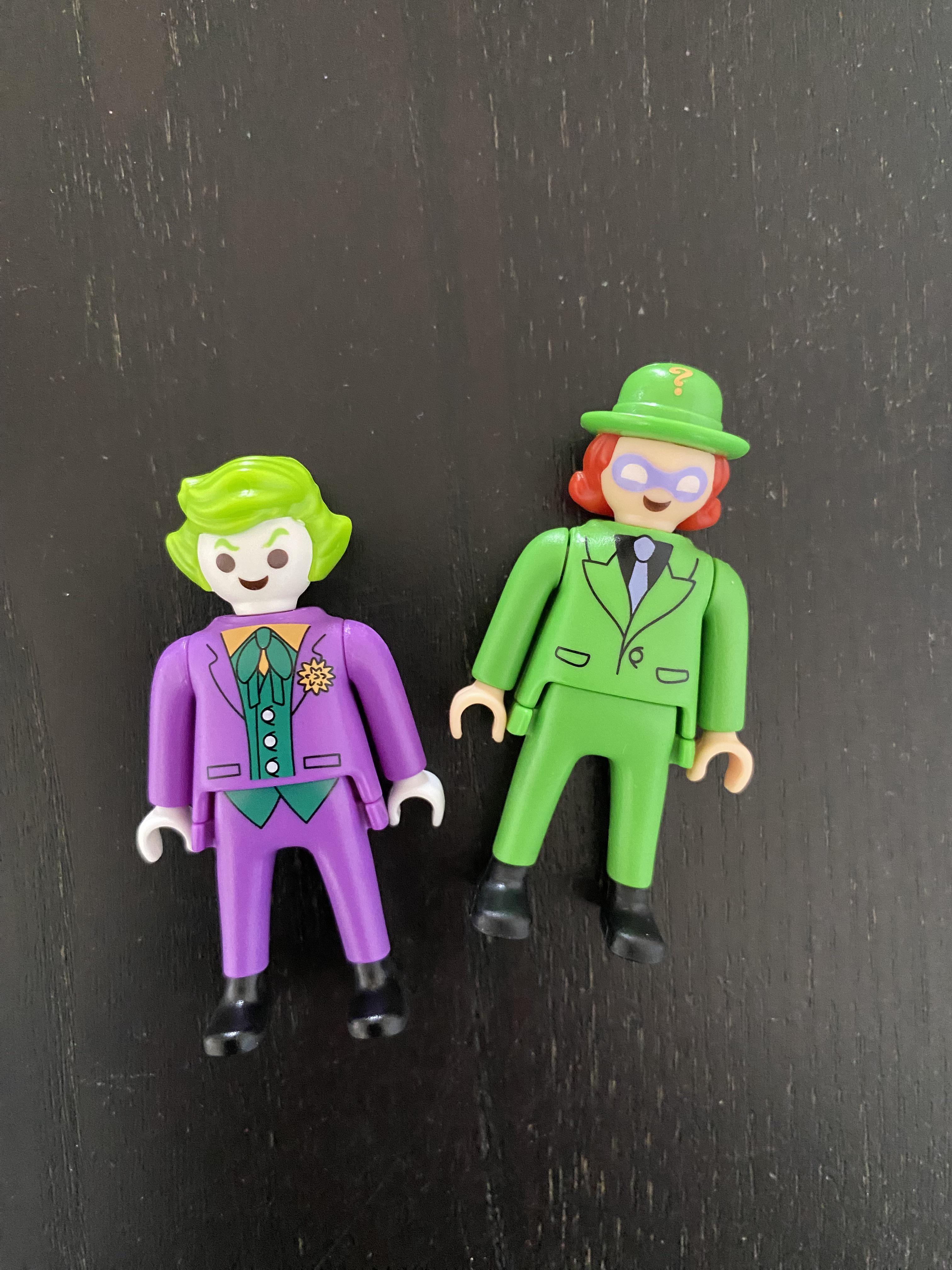 Ehi, ho già tutte le figurine della Playmobile Kinder e me ne manca una, Harley Quinn. Lo scambierò con i due nella foto, ne troverei un altro da qualche parte 😀 So che posso comprarlo, ma non mi piace. Per me è un gioco 🙂 il migliore di Bratislava.