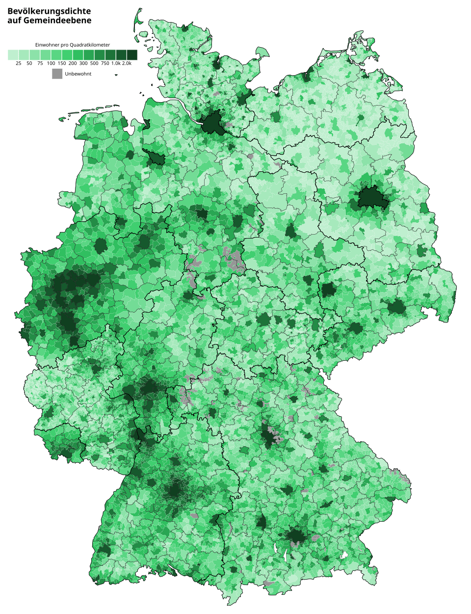 State boudaries don’t really matter. All people in Brandenburg live in a low-density state, but half of them live in the high-density metro area consisting of Berlin and its imediate sourroundings.