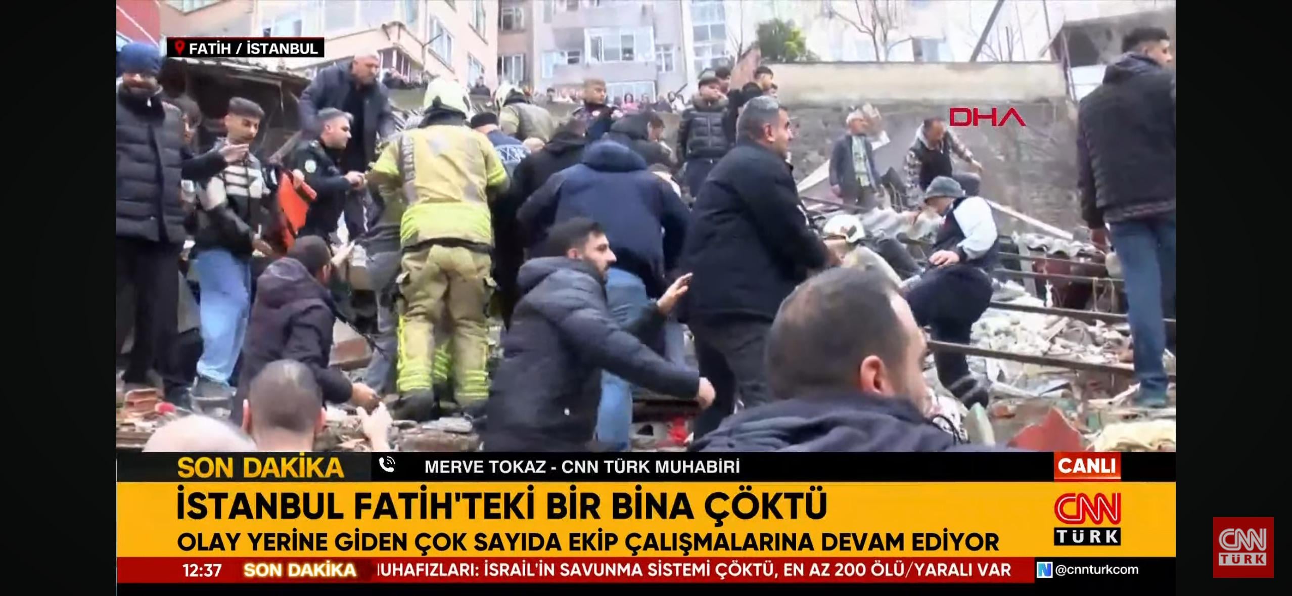 Son dakika: Istanbul Fatih’teki bir bina çöktü.
