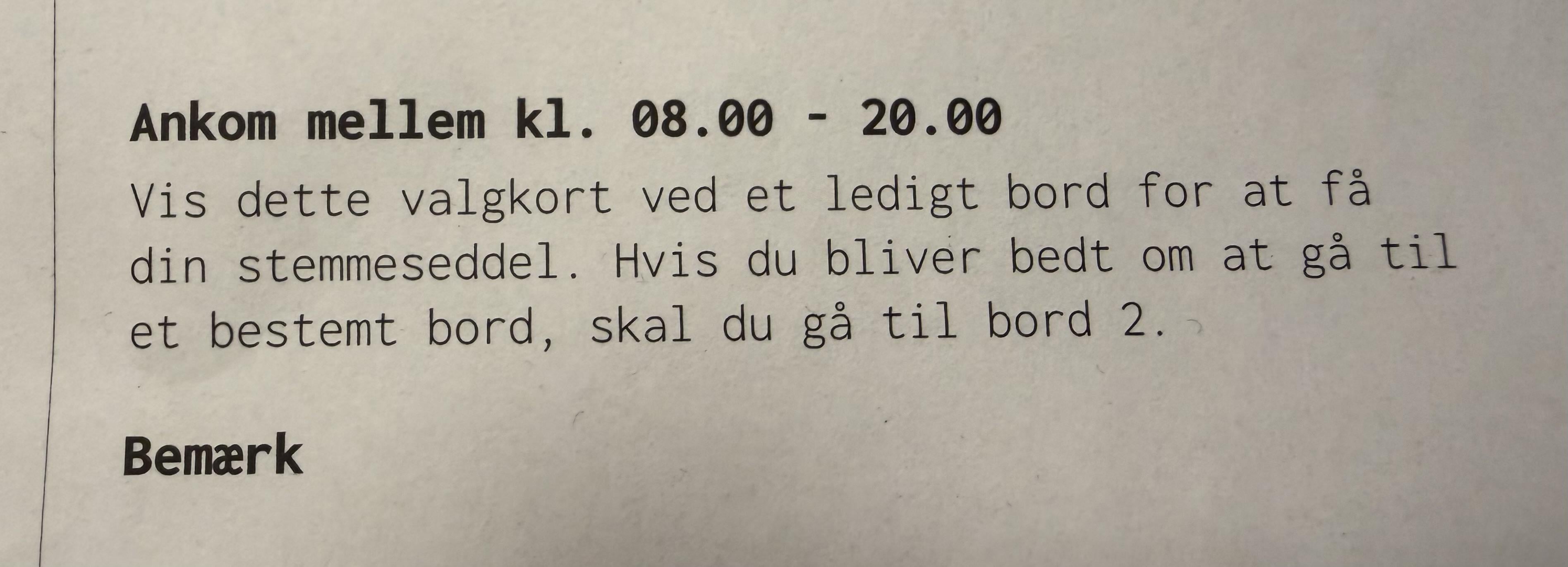 Når der på dit valgkort står gå til bord 2