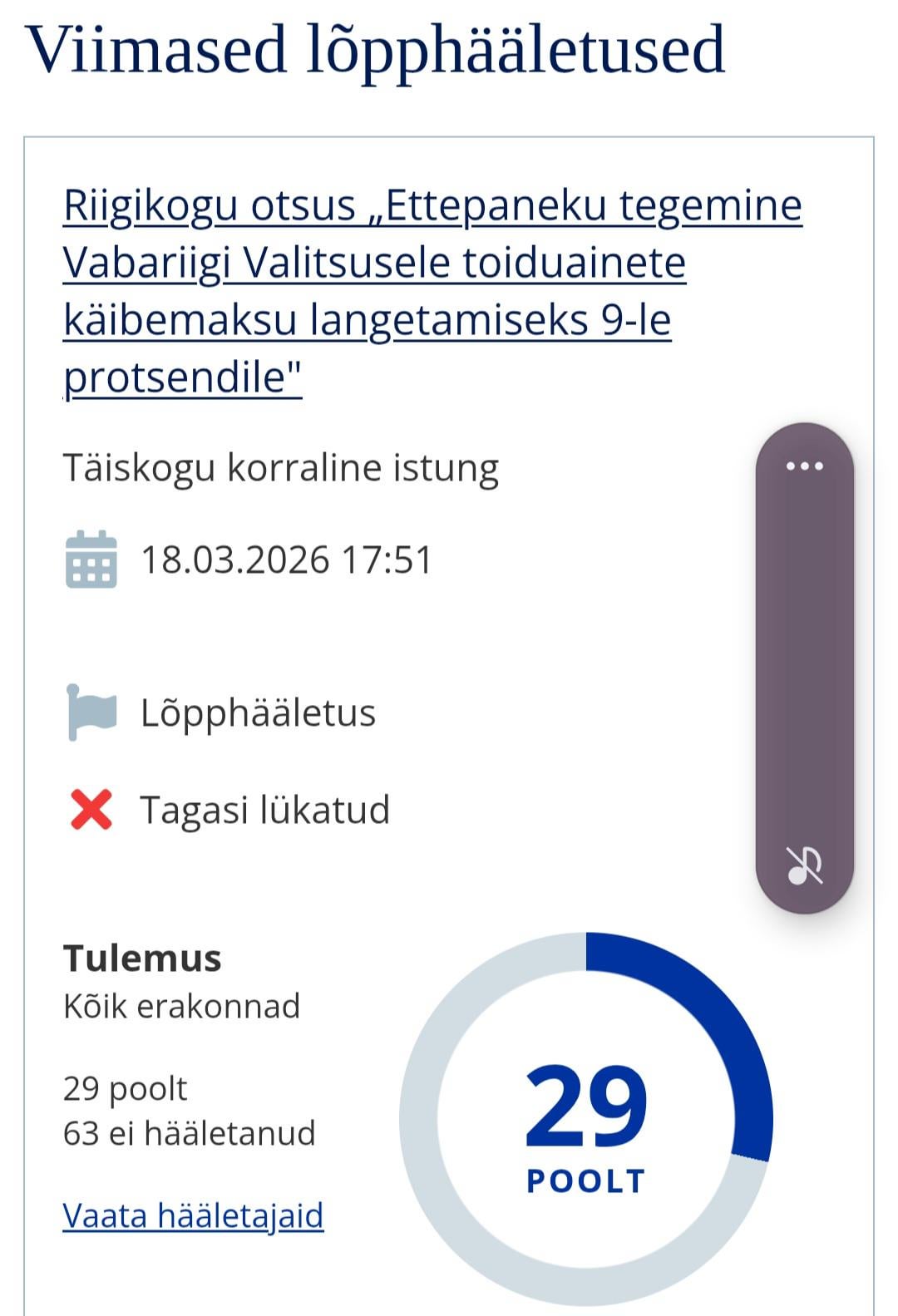 ahvikene on 24/03/2026 00:08 Siis ei saa keegi öelda, et hääletas vastu. Kuid eks see vaikimine räägib enda eest.