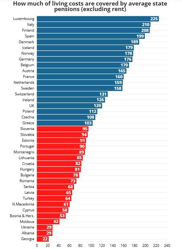 Kto by pomyślał że włochy i hiszpania mają taki zrównoważony i sprawny system emerytalny 😀