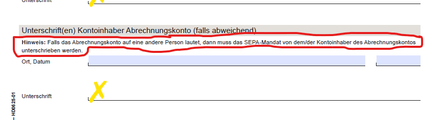 Ciao, chiuderò il mio conto Commerzbank dall’estero e un mio amico ha accettato di essere titolare di un conto di liquidazione. Il testo delineato significa che dovrà firmare un modulo di mandato SEPA separato o firmare quella regione equivale a firmare un mandato SEPA?