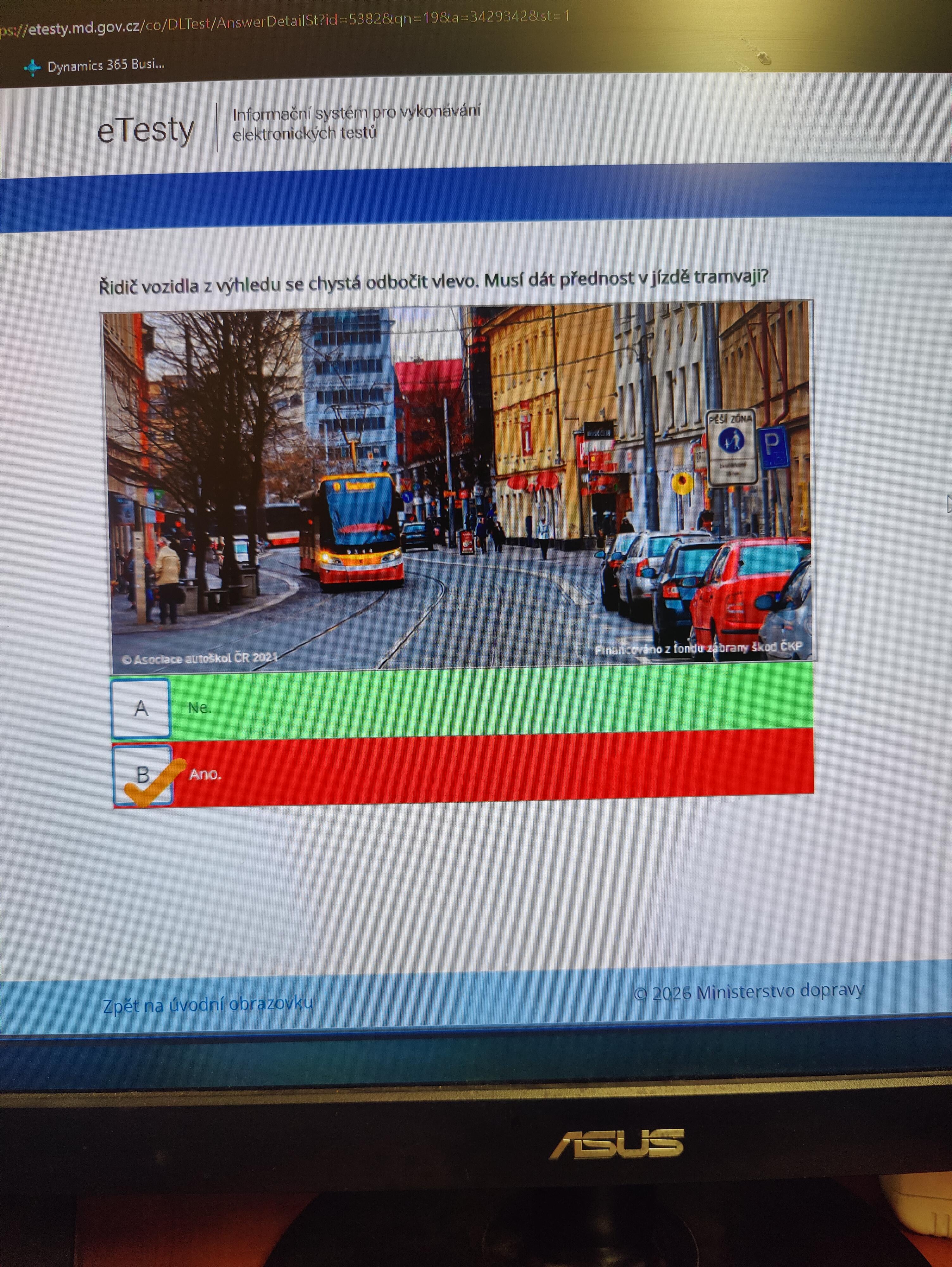 Tuhle fotku tady vidim aspon po desaty. Spravna testova odpoved – Ne, nedavas prednost, protoze vyjizdi z pesi zony. Spravne realne vyhodnoceni situace – kdyz tramvaj pojede, tak ji dej prednost, protoze ji nepretlacis.