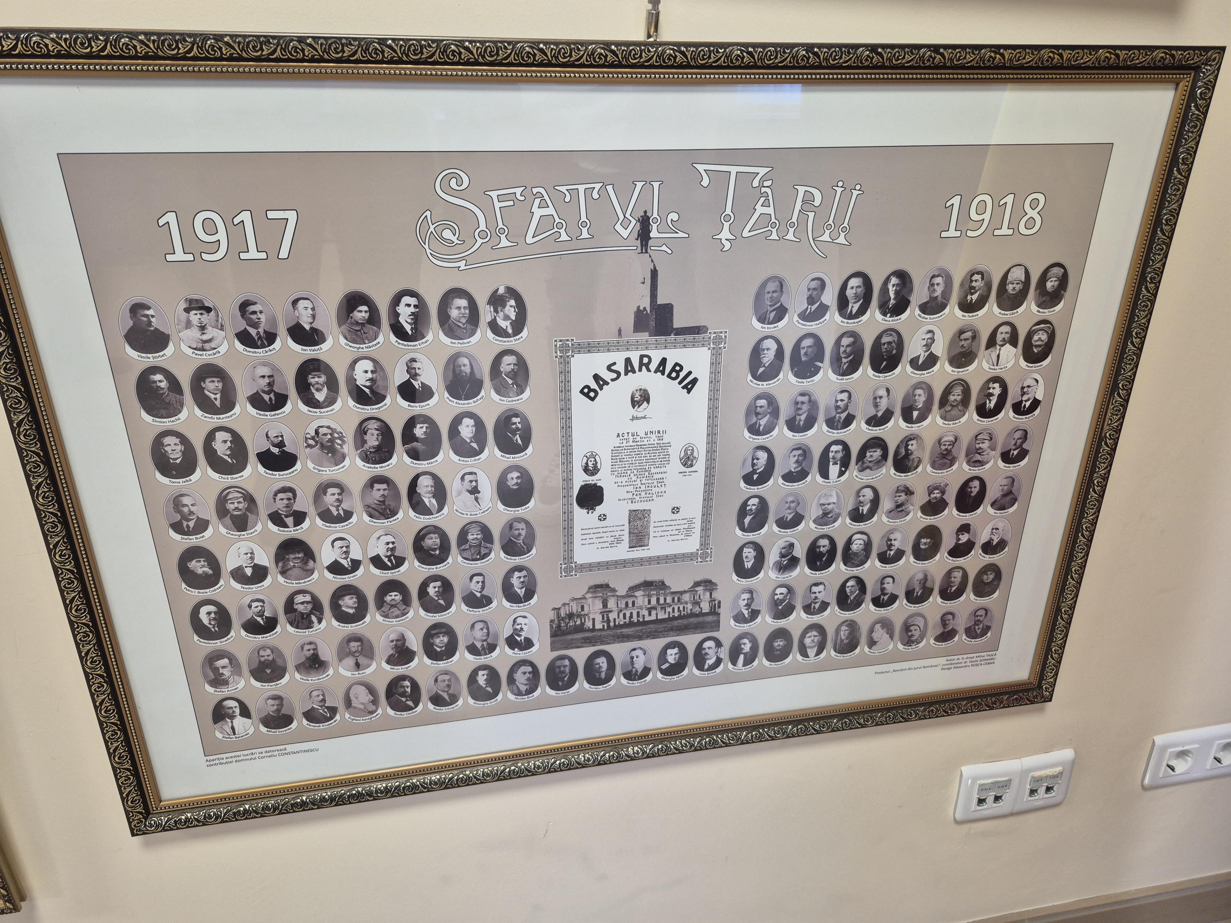 Sulla colonna di sinistra, al centro, si vede anche Felix Dudkiewicz (https://ro.wikipedia.org/wiki/Felix\_Dudchievicz), il rappresentante dei polacchi. Nella riunione in cui si è votato per l’unificazione ha dichiarato che gli è dispiaciuto di dover parlare in russo in questo grande giorno per i Moldavi, che è il simbolo dell’oppressione dei Moldavi e dei Polacchi, e che, a nome dei polacchi, ha votato per l’unificazione. Nel periodo tra le due guerre divenne persino ministro della giustizia in Polonia.