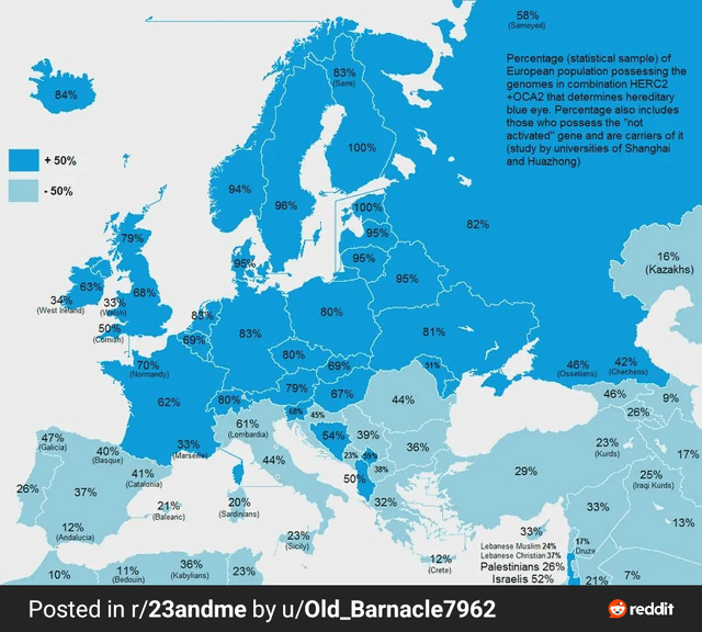 Il tasso di occhi blu nei berberi puri della regione della Kabilia in Algeria è per lo più il tasso dell’Andalusia e del Portogallo messi insieme, la genetica è strana