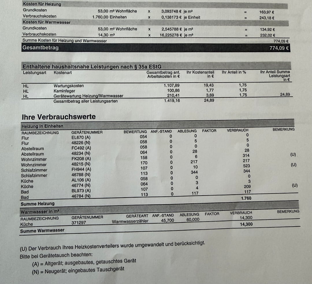 The only thing you can check yourself is whether the heating meter readings were recorded and reported correctly. All other costs look normal so far.