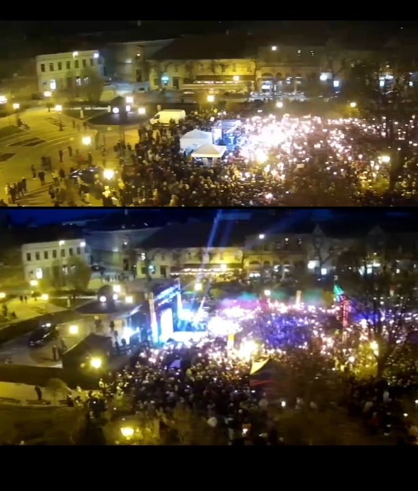 A pochi giorni di distanza, entrambe le parti hanno organizzato eventi a Nagykanizsa. Le dimensioni delle due masse possono essere facilmente confrontate nell’immagine della webcam locale. Da qui gli autobus non erano visibili.