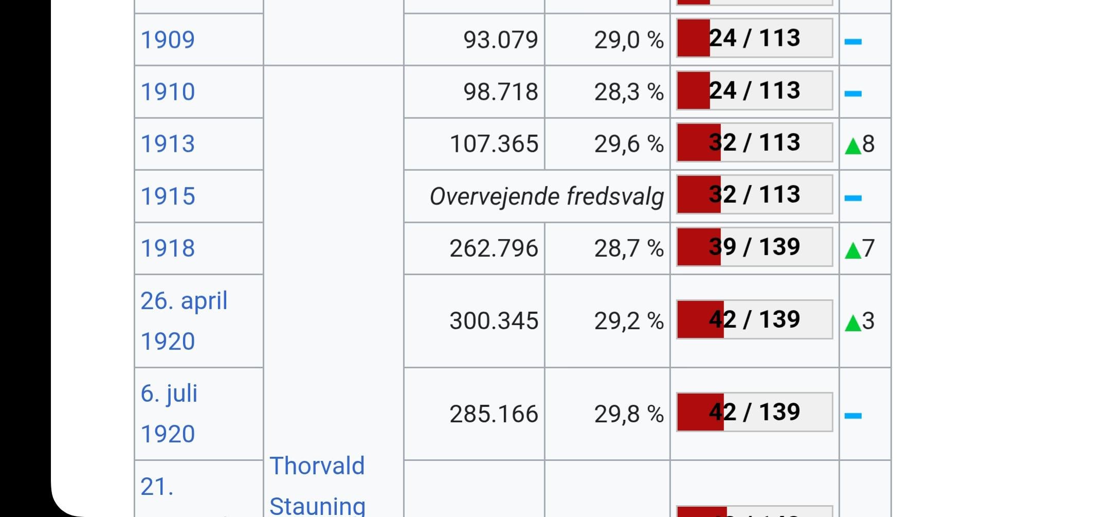 I socialdemocratici non hanno avuto meno di 42 mandati dal 1920, l’ultima volta che hanno avuto lo stesso numero di mandati è stato nel 1918, quando ne ebbero 39.