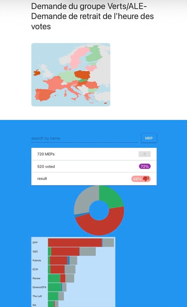 Non sono molto informato, ma il PPE vuole estendere il controllo della chat 1.0 e ha costretto a votare. In risposta, i Verdi hanno forzato il voto per non avere voto. Quindi un pollice in giù qui è un voto A FAVORE del controllo della chat.