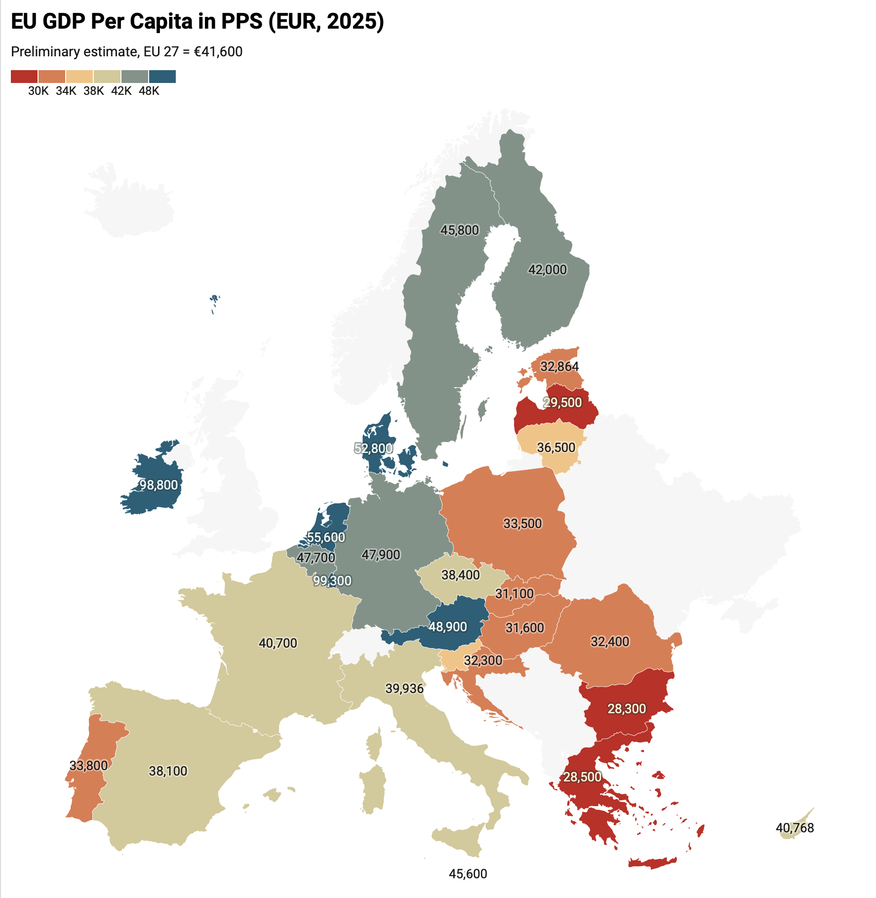 Co je taky dost zajímavý je Irsko, který je na papíře bohatý jak sviňa, ale Irové se kterýma jsem se bavil mi popisují Irsko skoro jako by bylo na úrovni Portugalska tvle. Tak nevím, jestli je to papírově dáno jen díky daním a tomu, že snad každá big tech korpo má HQ někde v Irsku, nebo kulturně, protože nadávat na Irsko je snad podmínka pro Irské občanství.