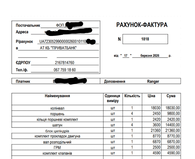 – purchase of parts for vehicle repair for the 5th Tank 2032💲