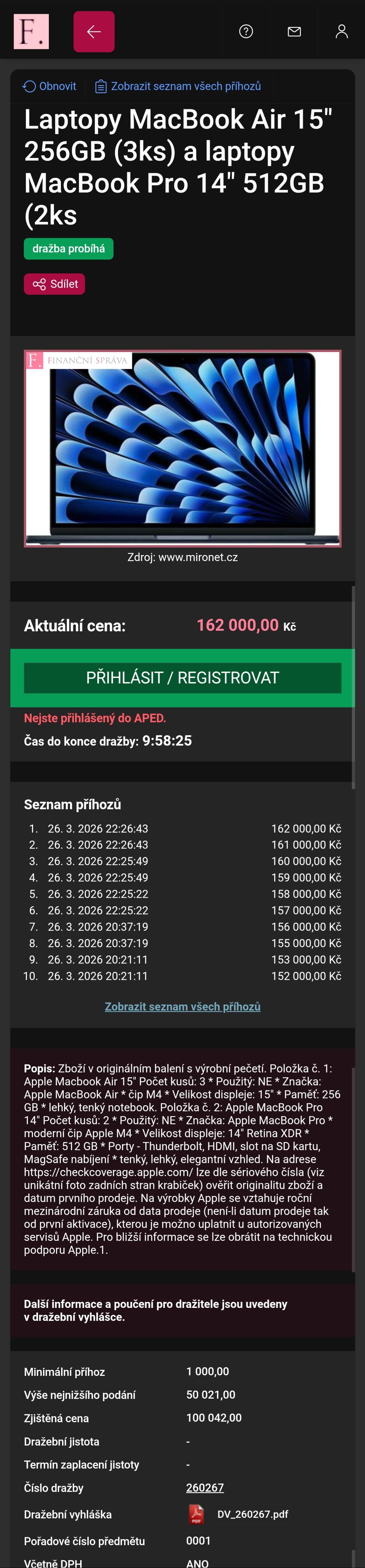 Forse sei stato colpito dall’ondata di pubbliche relazioni del nostro FÚ, dove dicono ad alta voce come verranno messi all’asta i dispositivi elettronici Apple, sequestrati da un commercio illegale.
