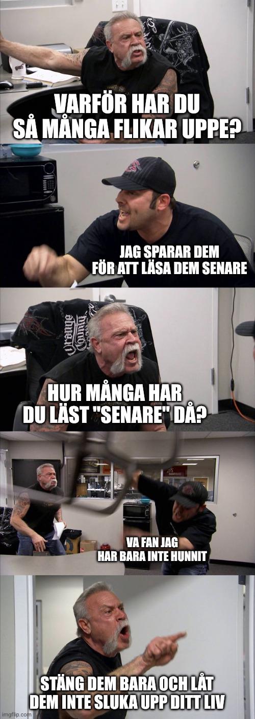 På datorn har jag aldrig mer än typ 10 men på telefonen är det typ två extra steg att stänga flikar då är man upp i ett hundra på en timme