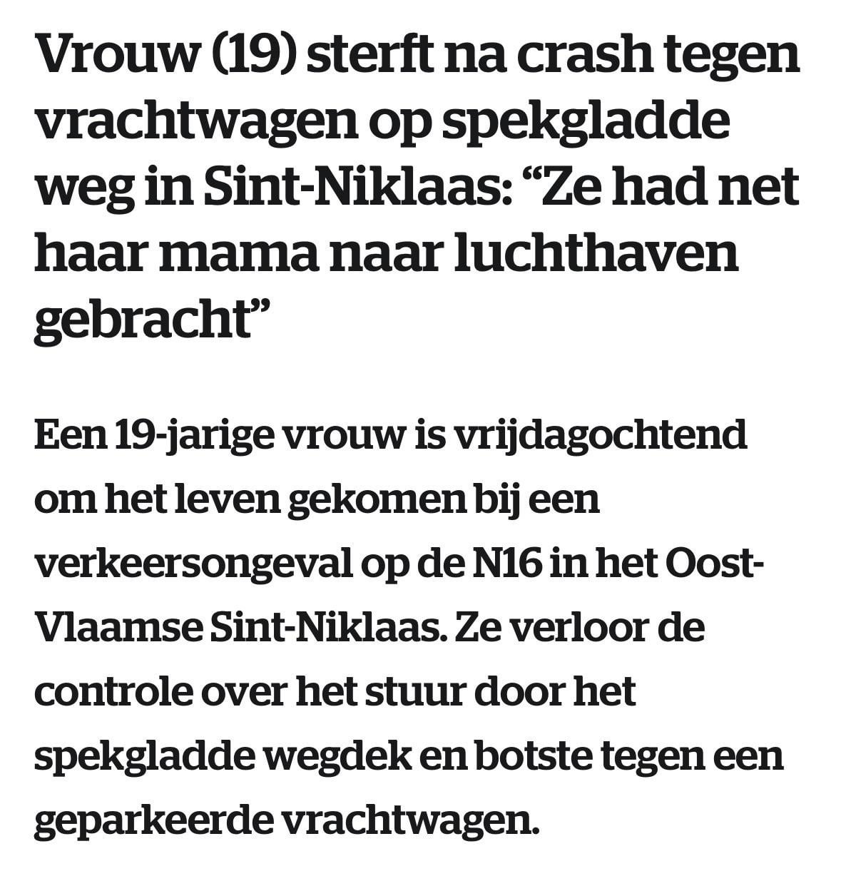 Nu is dit zeer spijtig voor dit meisje… maar de oorzaak is het gladde wegdek en niet die trailers. (Er van uitgaande dat ze correct geparkeerd staan.)