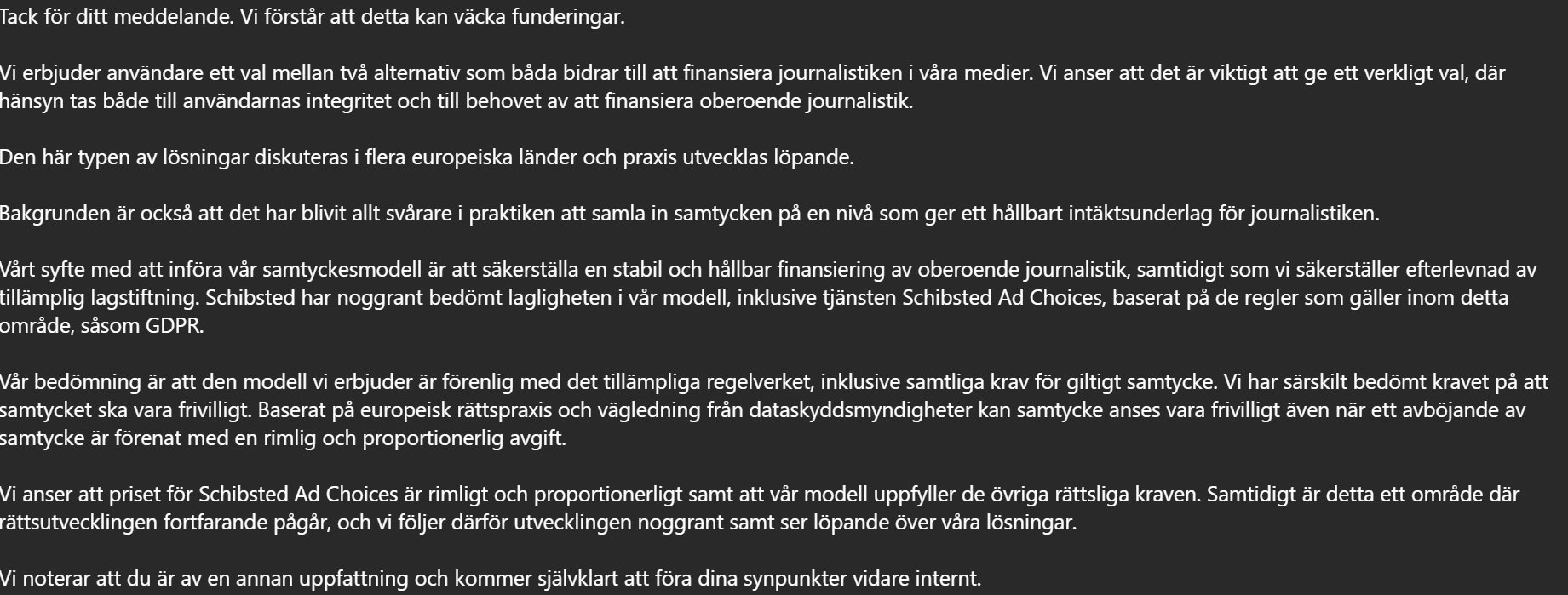 A 17 anni ero sconvolto dal fatto che Schibsted avesse introdotto il rifiuto della pubblicità personalizzata a pagamento. La privacy online è importante per me ed evito (per quanto possibile) che i miei dati personali vengano venduti a centinaia di intermediari di dati e “partner di collaborazione”.