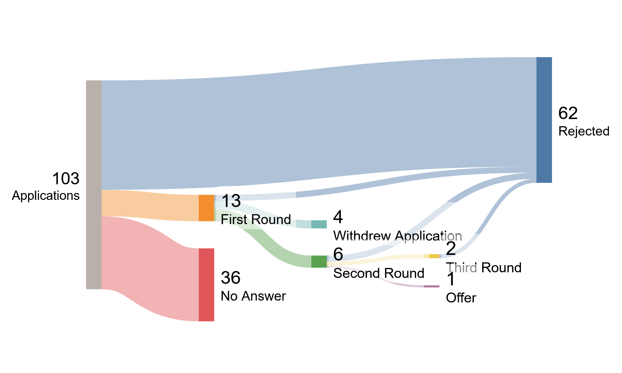 On 100 applications, I get in average at least 80 no answer and the rest is mostly rejection (Sometimes, I’m too over-qualified, sometimes not enough, sometimes they got someone else).