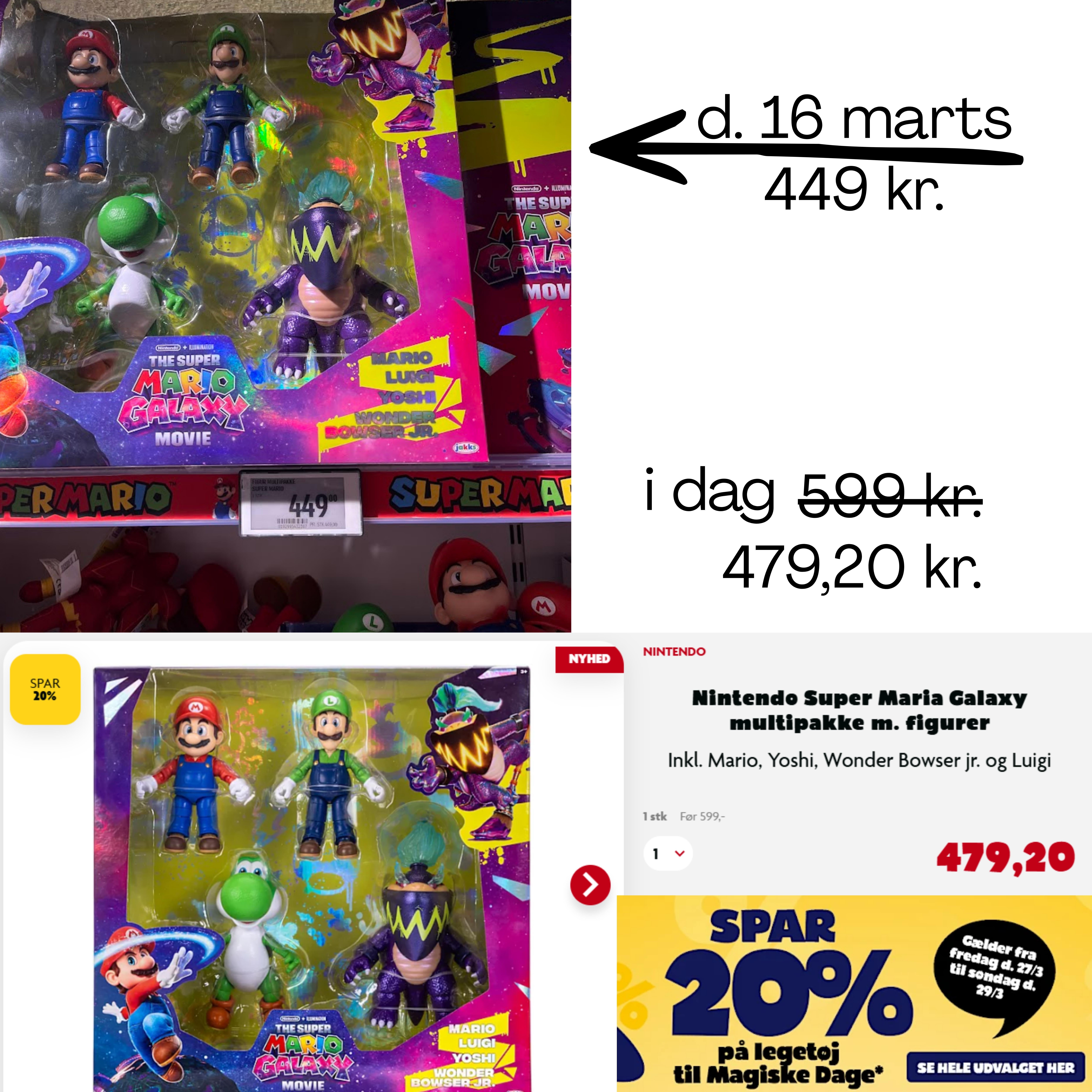 Det gjorde de også i deres ønskebog til jul. Inden den udkom tog jeg billeder af legetøj i butikken med prisskilt og i bogen var samme legetøjs førpris pludselig dyrere 😑