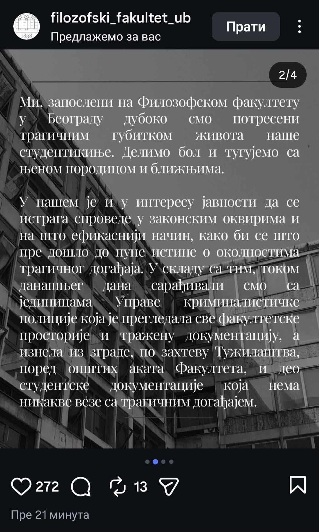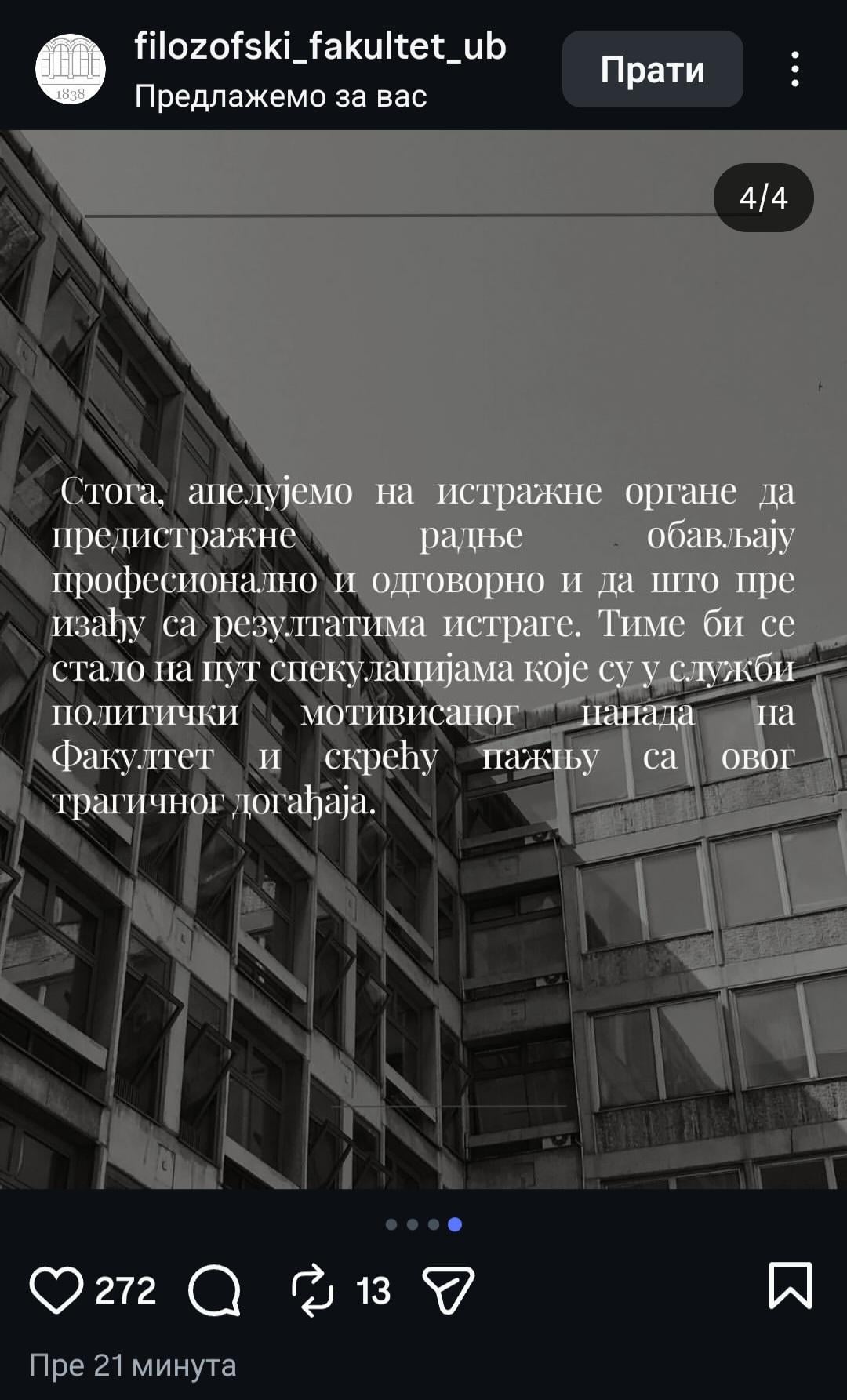 Hoće li se javiti neko od studenata ko zna šta se dogodilo? Meni deluje kao da je bačena jer je vrlo teško skočiti iz ovakvog prozora.