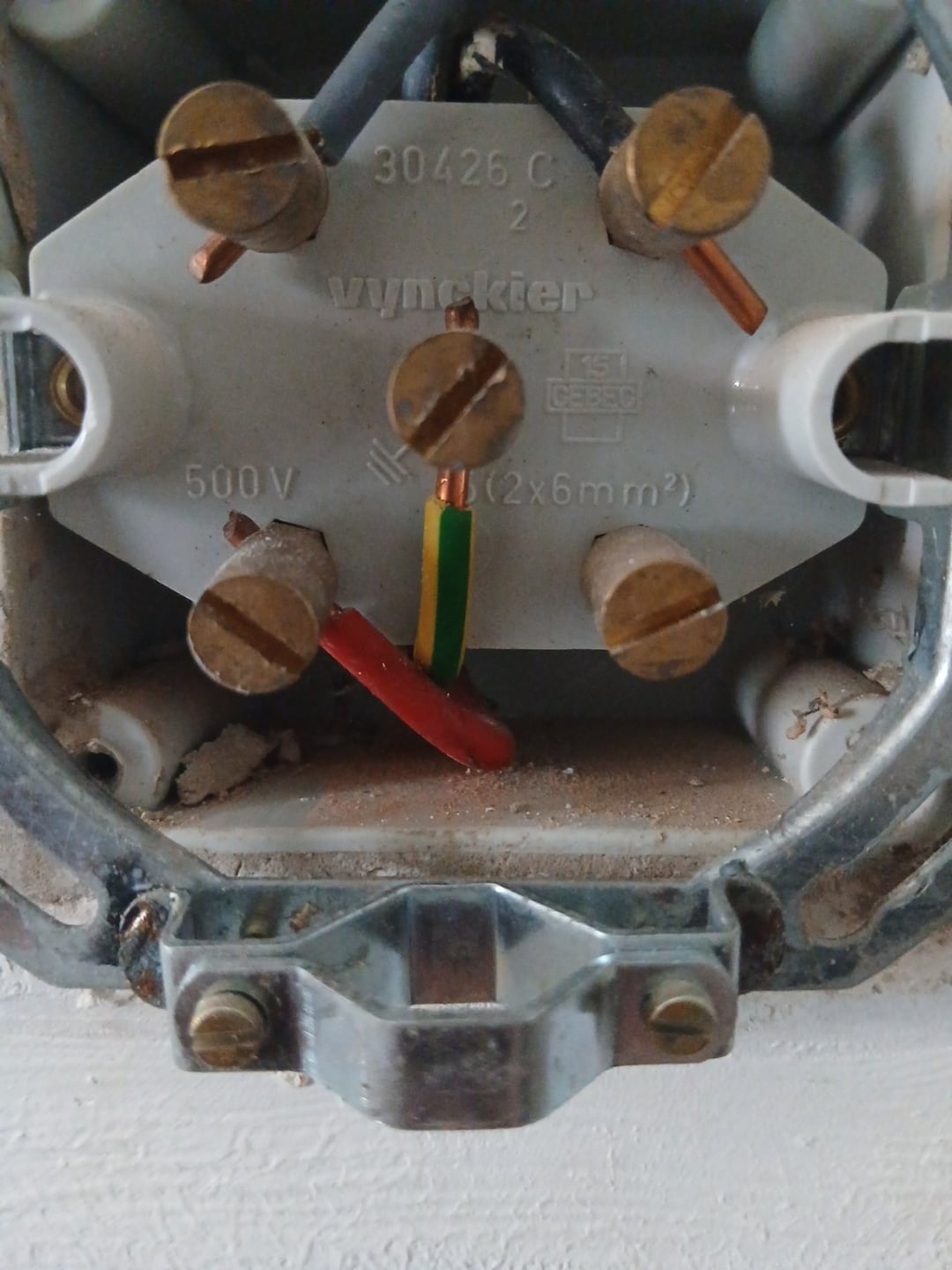 per la nuova cucina ho bisogno di una presa rinforzata per il piano cottura. assorbe 7k watt max. Nella vecchia cucina esiste già un vecchio collegamento a stella, ma non è collegato. Ho trovato anche un fusibile libero da 32A 3p nell’armadio. L’idea è di connetterli entrambi con un cavo 5g6. La 1 fase e la 3 fase possono essere eseguite secondo il libretto AEG.