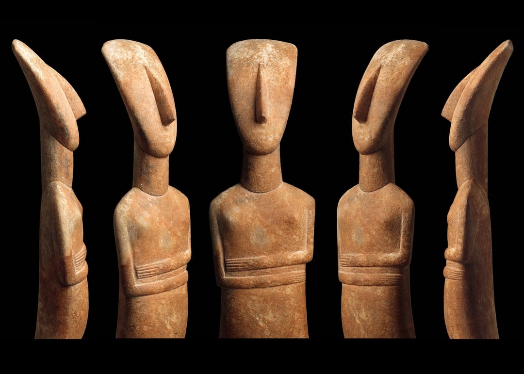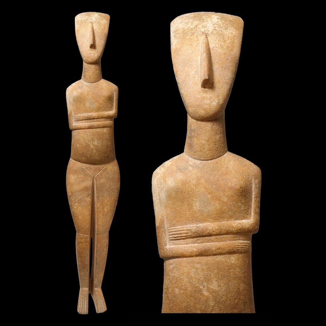 Figurina femminile in marmo delle Cicladi, tipo regolare – variante Tardo Spediano. attribuito allo scultore Bastis (da Pat Getz-Gentle). Periodo proto-cicladico II, fase Syros, c. 2600 – 2400 a.C. Altezza: 62,79 centimetri. Il Metropolitan Museum of Art, New York, Stati Uniti. (1750×1750) (2800×2000)