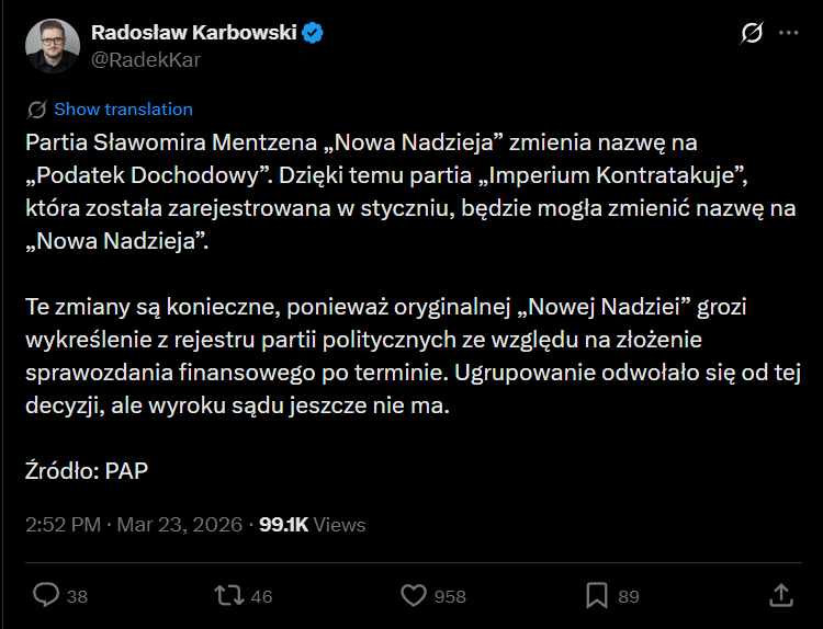 W pierwszej chwili myślałem, że komuś się za szybko Prima Aprilis włączył.