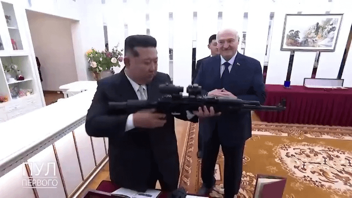 Il presidente bielorusso Lukashenko regala a Kim Jong Un un fucile automatico durante la sua visita in Corea del Nord https://v.redd.it/su7alsqt7rrg1 di Gamebyter