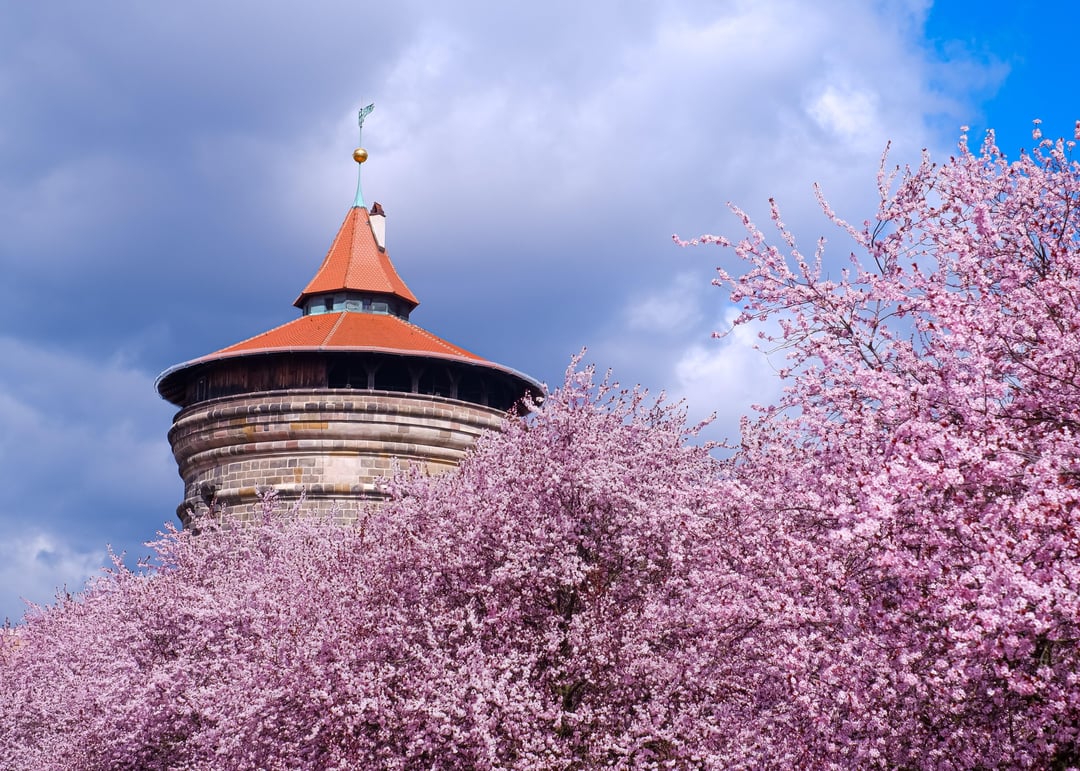 La fioritura dei ciliegi intorno a Laufer Torturm, vicino a Rathenauplatz, Norimberga https://www.reddit.com/gallery/1s72tto di Formal-Ad276