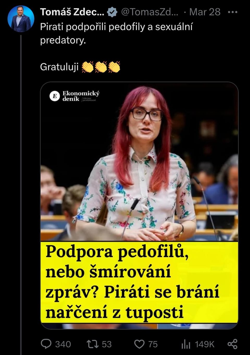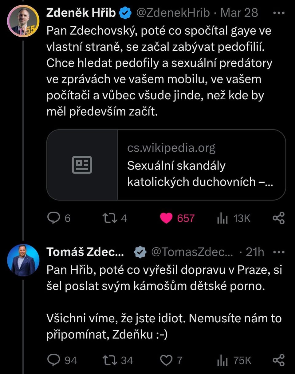 Zdechovský accusa i Pirati di sostenere i pedofili e i predatori sessuali perché combattono contro lo spionaggio https://www.reddit.com/gallery/1s7ij4w di Leather_Dealer_9421