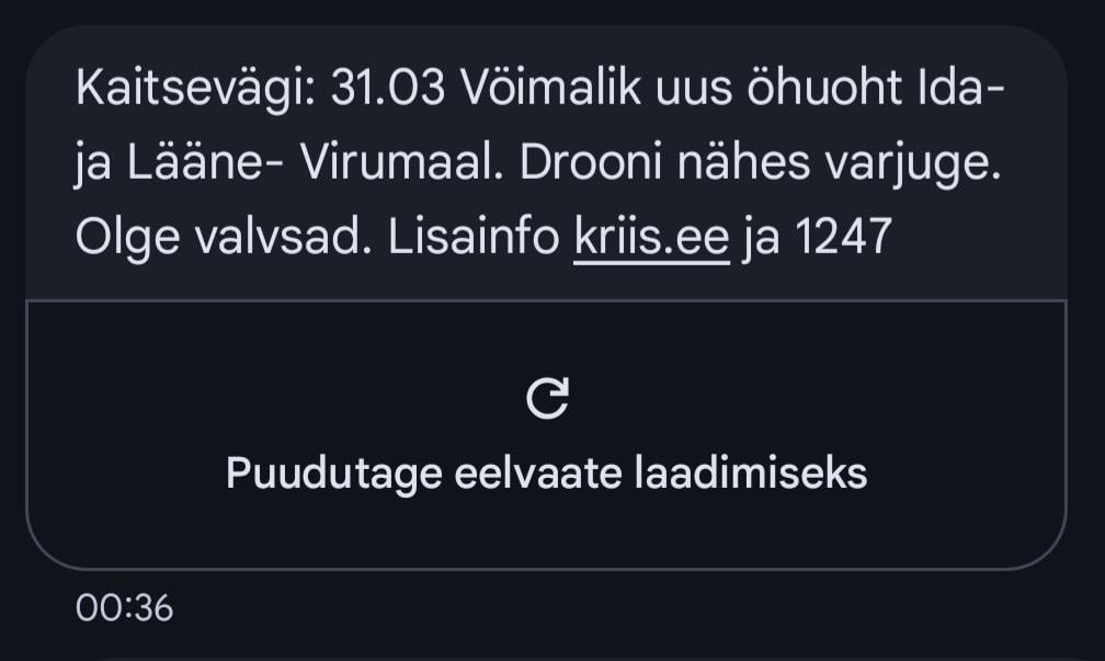 [https://www.err.ee/1609982190/kaitsevagi-teatas-voimalikust-ohuohust-kirde-ja-louna-eestis](https://www.err.ee/1609982190/kaitsevagi-teatas-voimalikust-ohuohust-kirde-ja-louna-eestis)