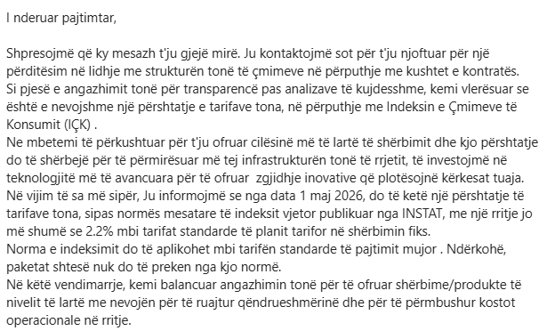 Dy kompani janë këto . I bëjnë çmimet si t’i dojë menderja. Po nejse big up për faktin që të paskan njoftuar . S’do habitesha po mos t’a bënin.