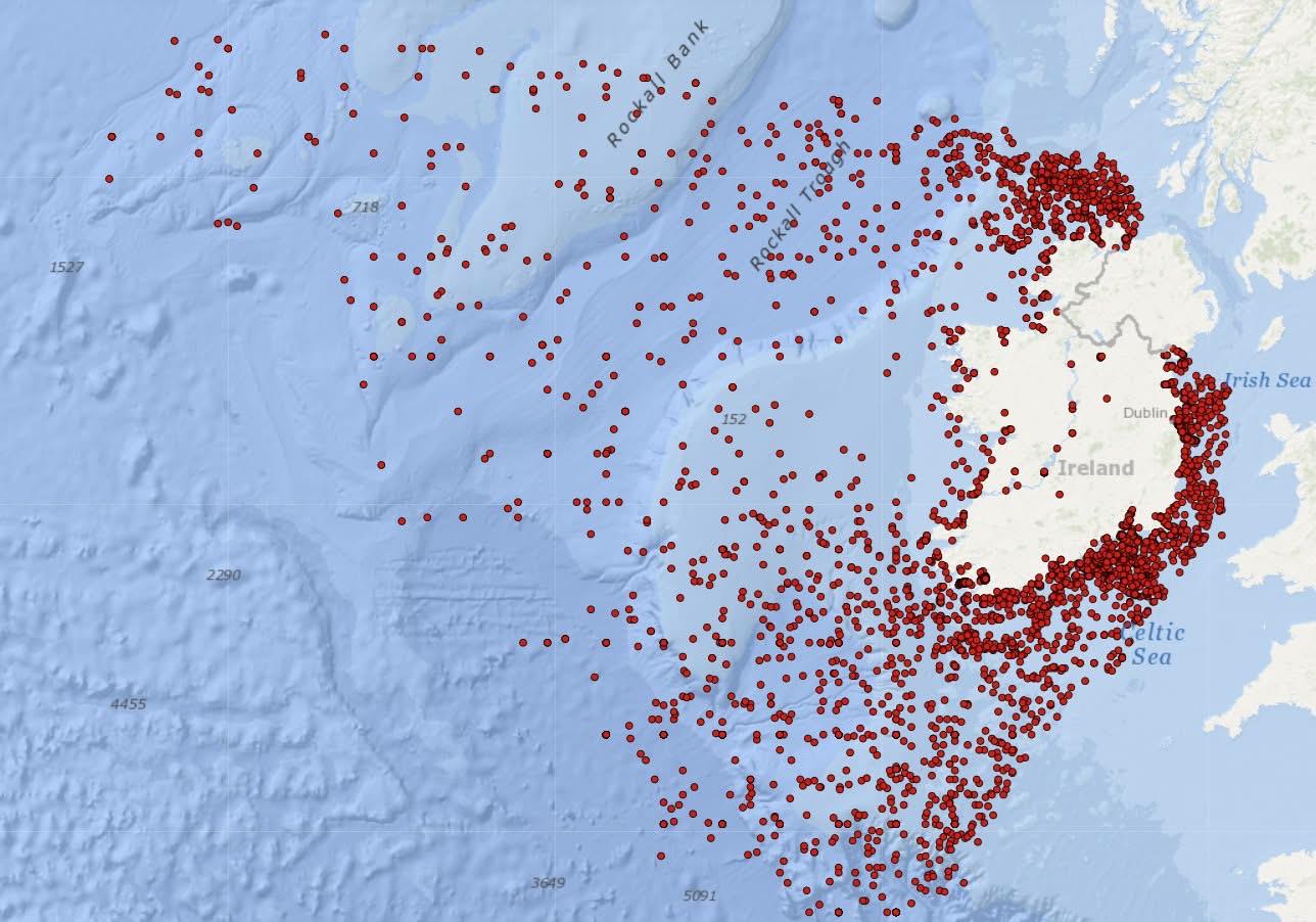Mappa dei naufragi in Irlanda a partire dal 1530