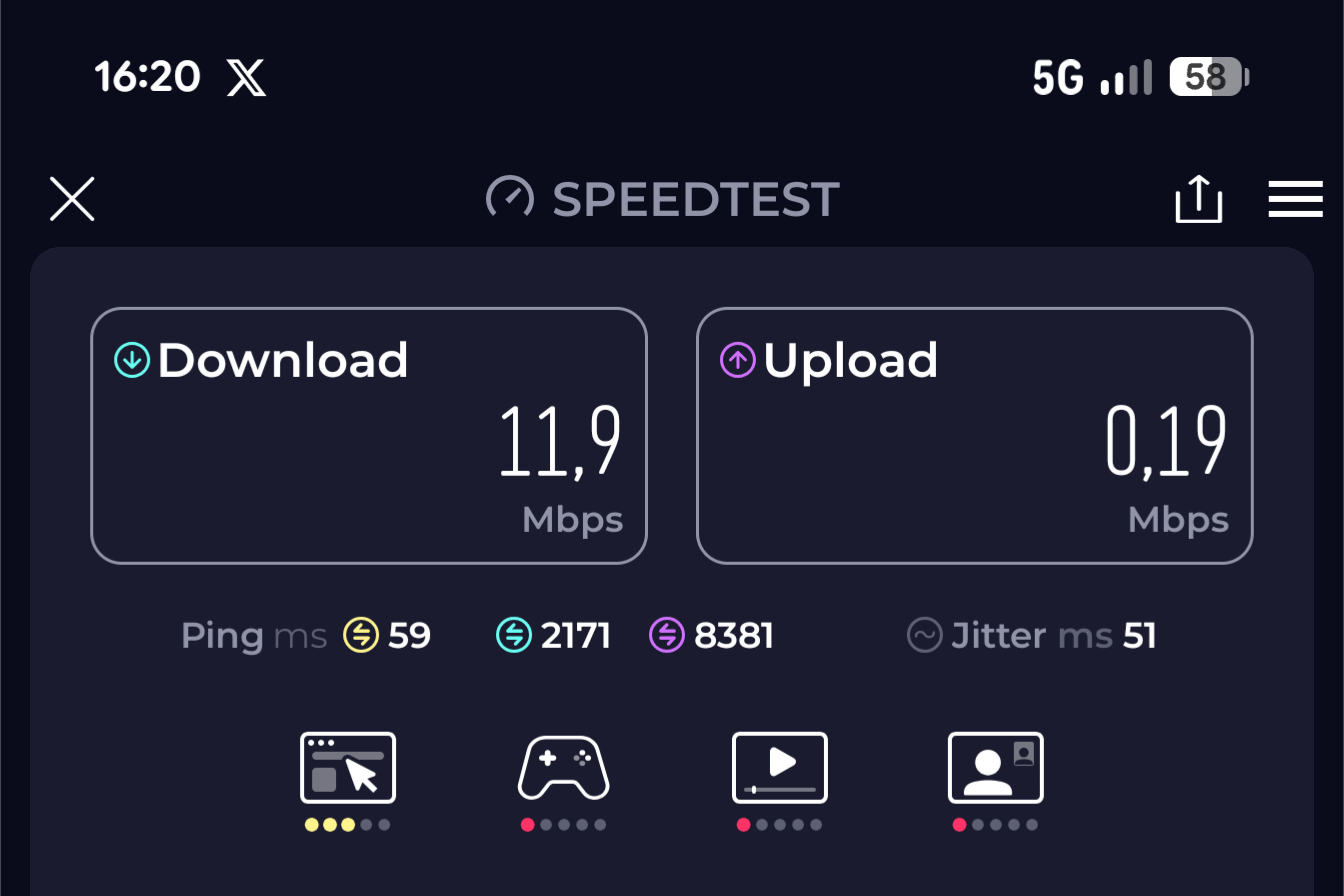 5G attivo, questa è la velocità in una posizione centrale ad Ankara https://i.redd.it/lptfh8datdsg1.png di ilica1407