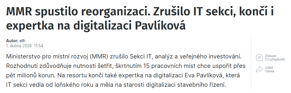 A ta digitalizace stavebního řízení je s náma v místnosti? Když děláš práci na hovno, vyhoděj tě
