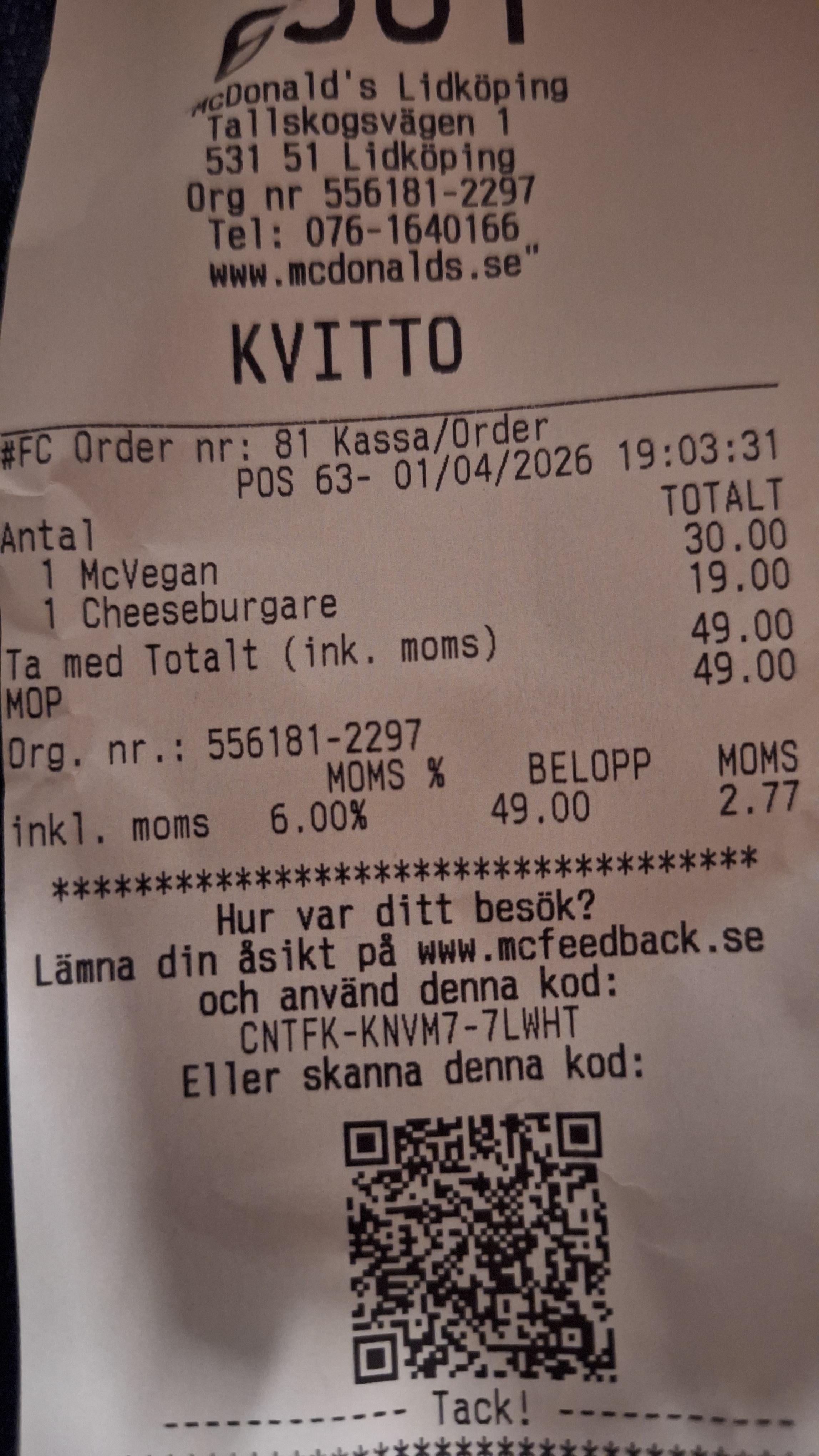 Var inte ens sänkt moms när jag köpte take away idag lol.