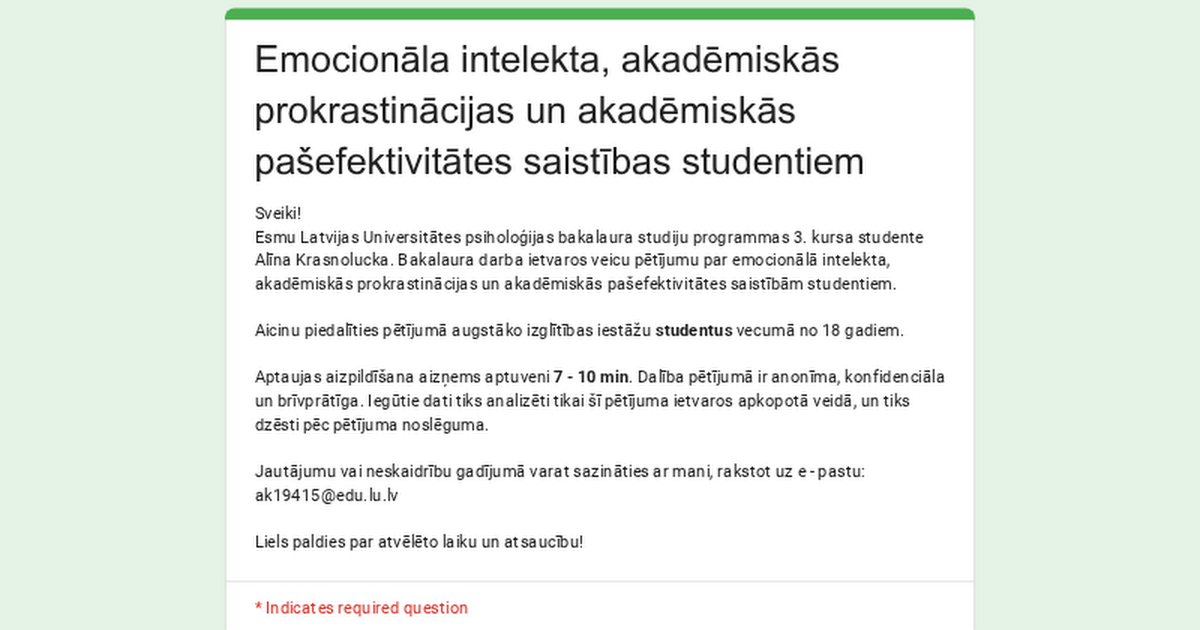 Aptauja par akadēmisko prokrastināciju