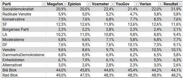 > Samlet set ramte Verian og Megafon tættest på valgresultatet, mens Epinion lå tydeligst ved siden af.